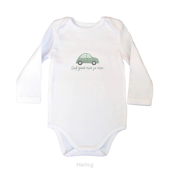 - Dit zachte witte rompertje met de tekst ‘God gaat met je mee’ en een autootje is een mooie en betekenisvolle keuze voor je baby. ...